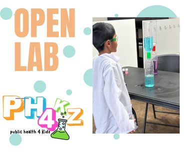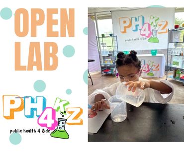Open Lab is a hands-on science experience hosted by Public Health 4 Kidz where children and families explore science and public health through fun, interactive activities in an open, welcoming lab environment.